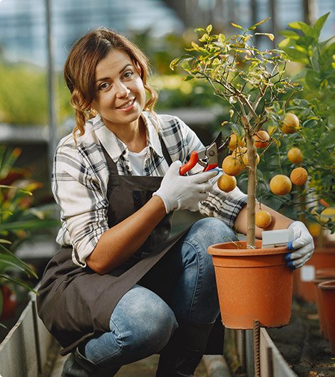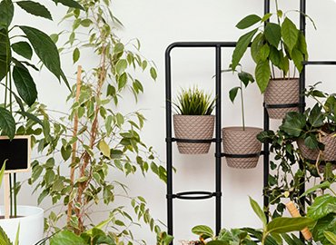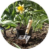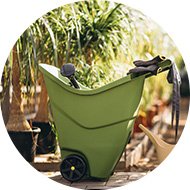 Shrubs, trees, annuals, perennials, roses, vegetables, bulbs, earthenware,