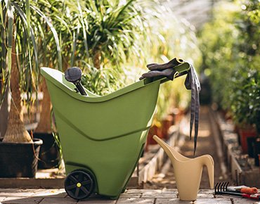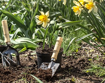 Shrubs, trees, annuals, perennials, roses, vegetables, bulbs, earthenware,